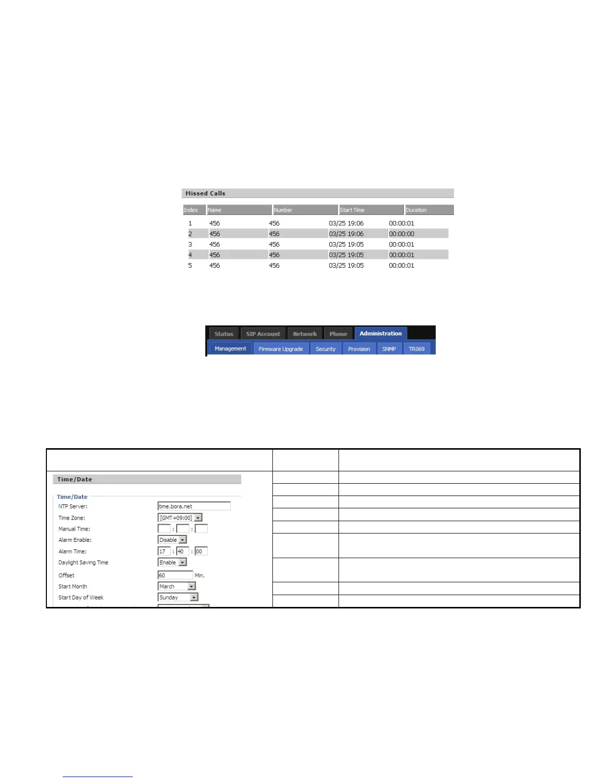 Flying Voice Technology IP542N - Missed Call; Administration; Management; Time;Date