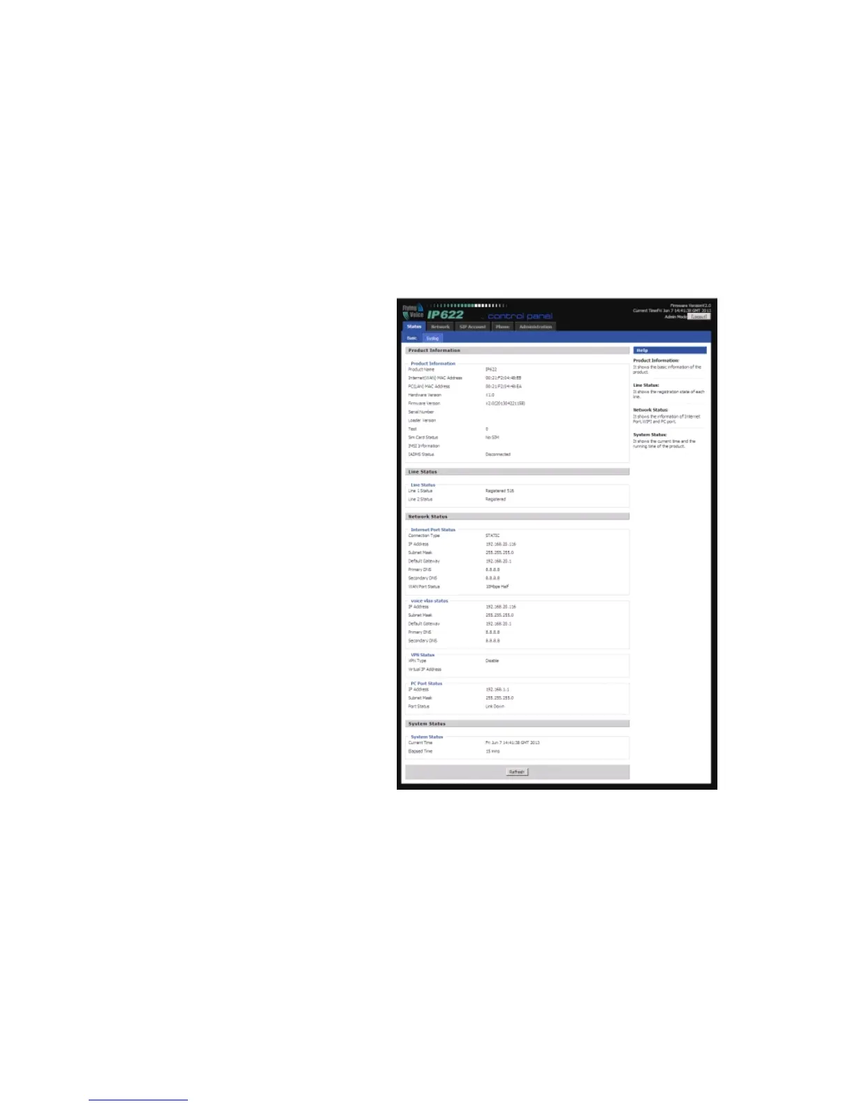 Flying Voice Technology ip622 - Status; Basic