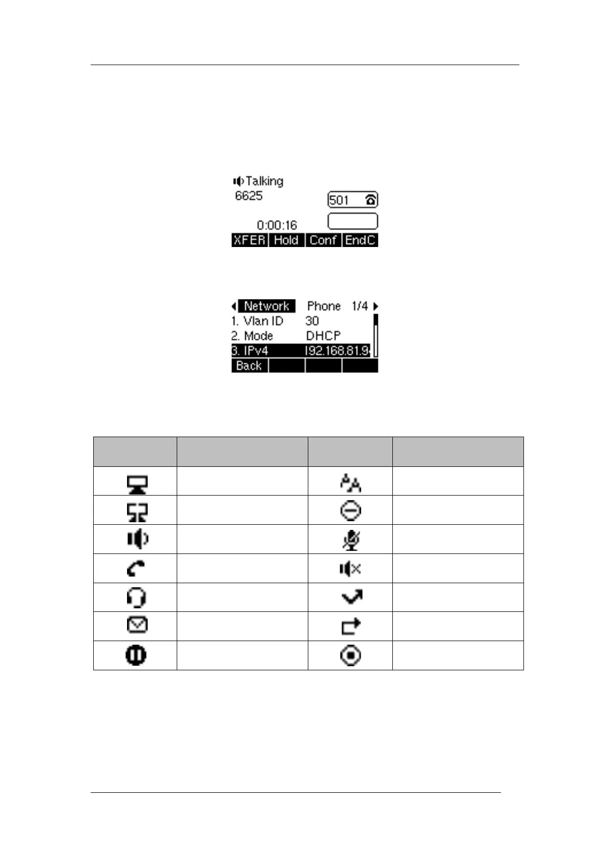 When there is an active call and a held call, the calls screen is shown below: