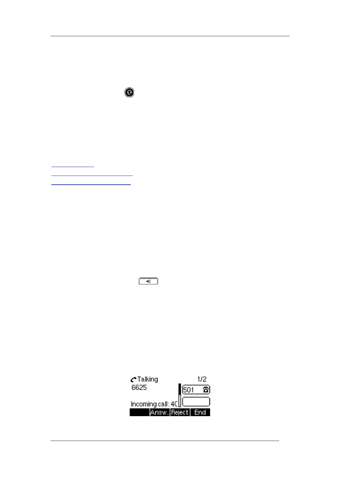 of the incoming call. You can choose to answer the incoming call.