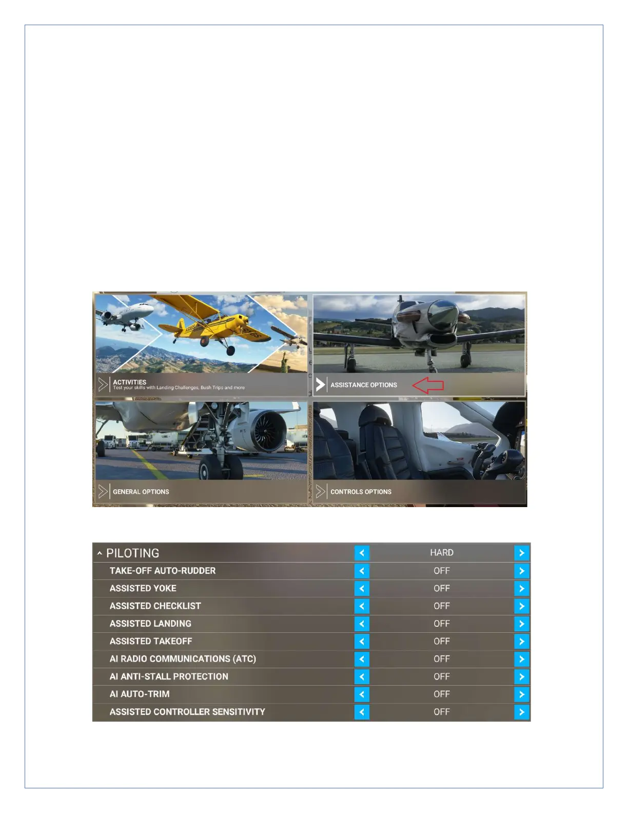 4. Ensure that all “PILOTING” options are set to “OFF”