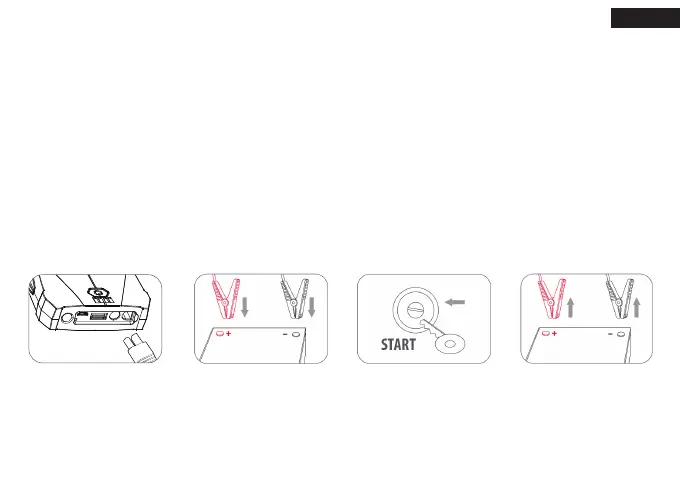 1. Insérez complètement la fiche du clip intelligent dans le démarreur de saut, les lumières rouge et verte clignotent