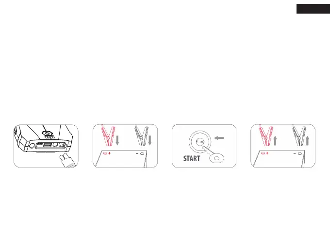 2. While charging the Jump Starter, the LED light will be flashed. Once it is fully charged, all 4 LED lights will on.