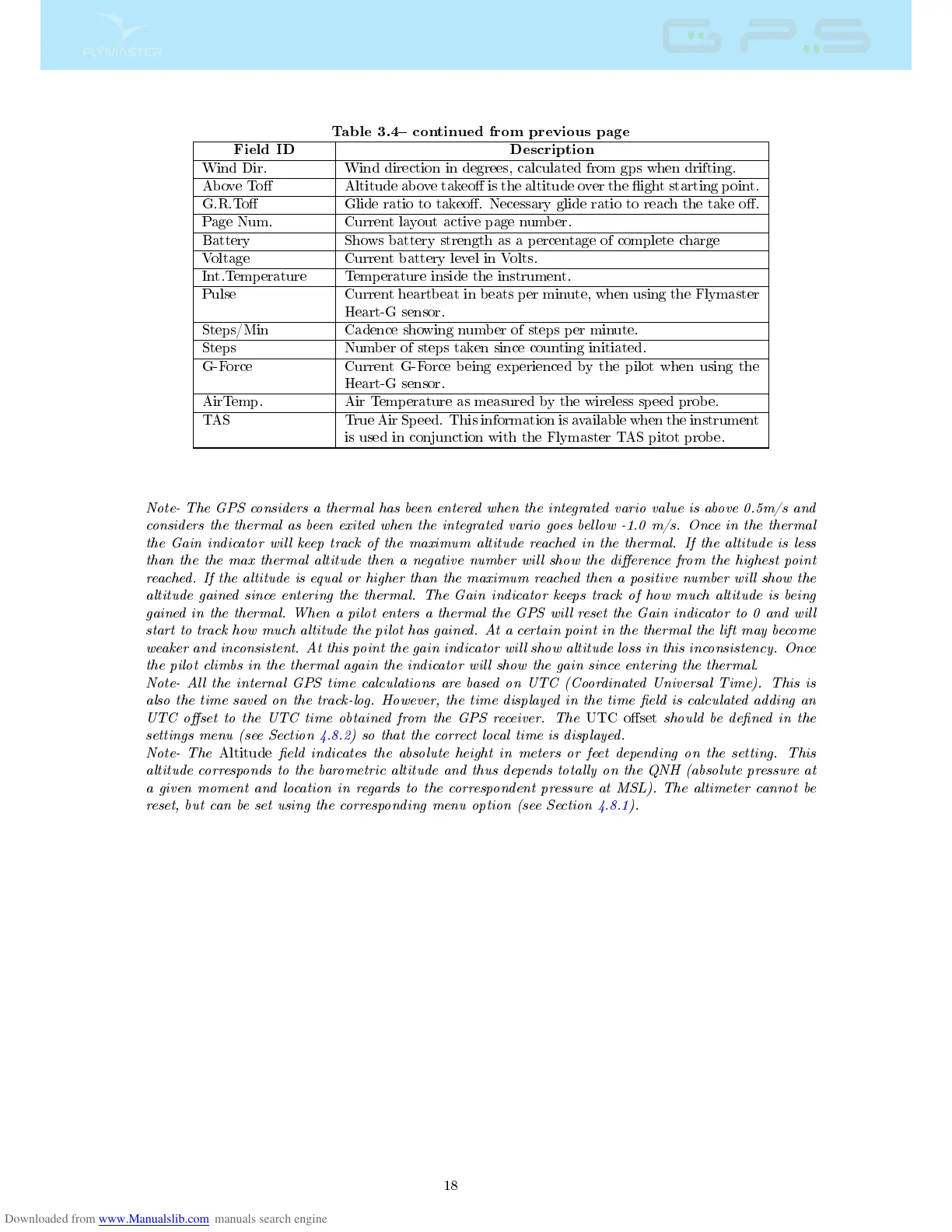 gained in the thermal. When a pilot enters a thermal the GPS will reset the Gain indicator to 0 and will