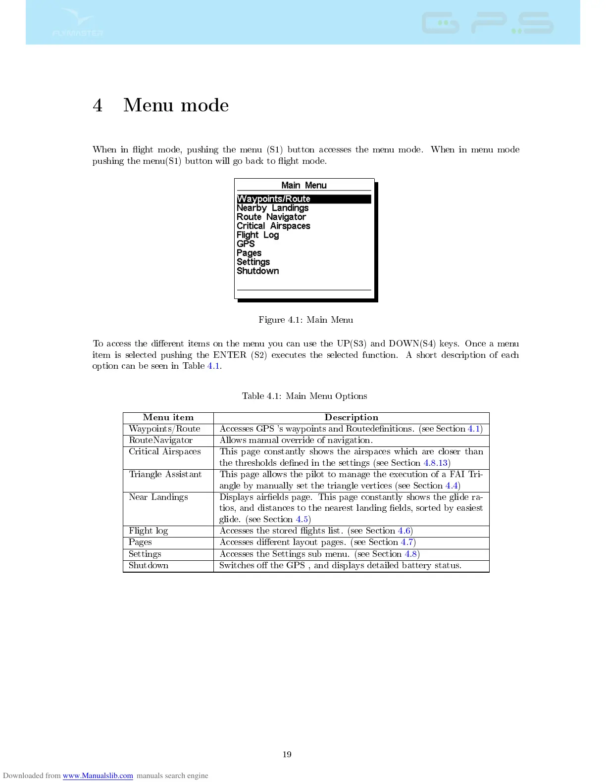 When in ight mode, pushing the menu (S1) button accesses the menu mode. When in menu mode