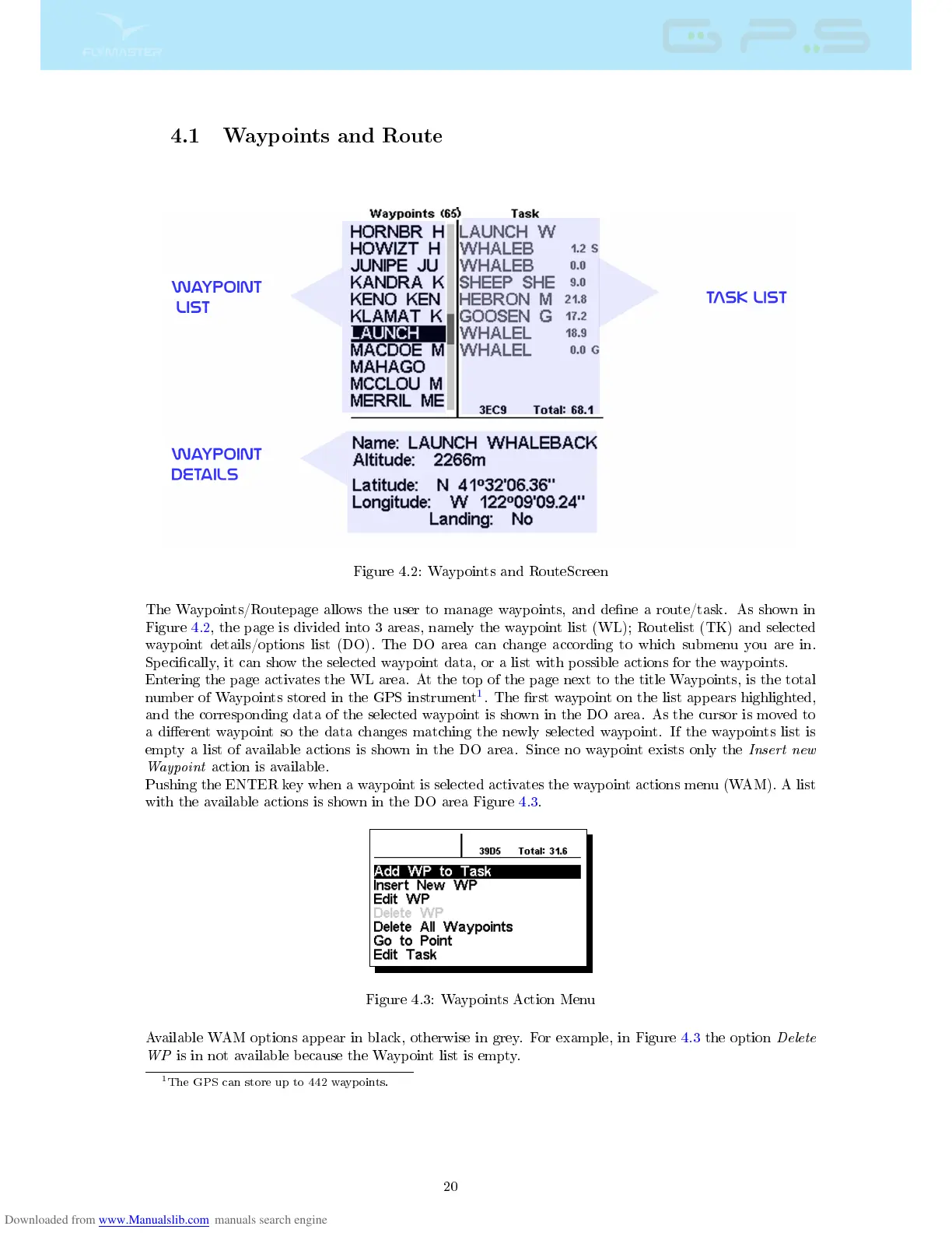 The Waypoints/Routepage allows the user to manage waypoints, and dene a route/task. As shown in