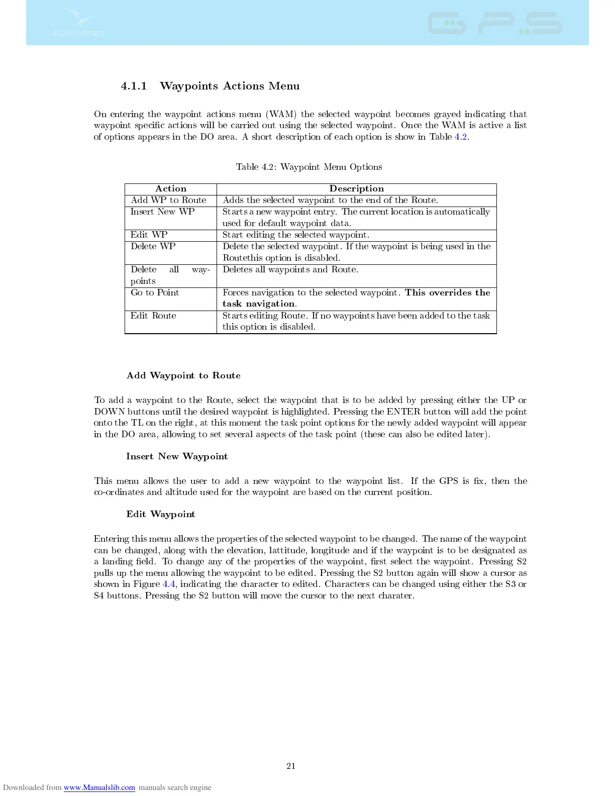 This menu allows the user to add a new waypoint to the waypoint list. If the GPS is x, then the