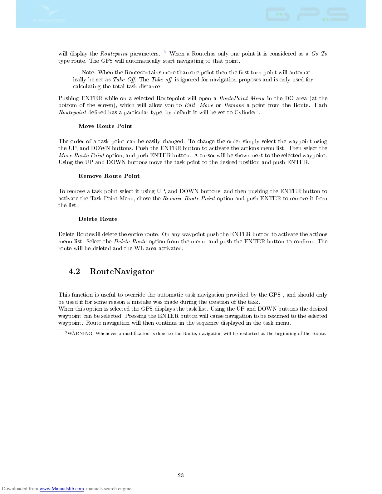 Note: When the Routecontains more than one point then the rst turn point will automat-