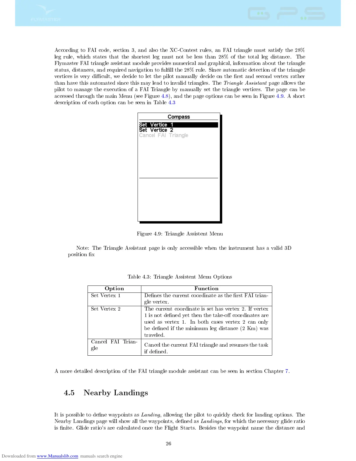 pilot to manage the execution of a FAI Triangle by manually set the triangle vertices. The page can be