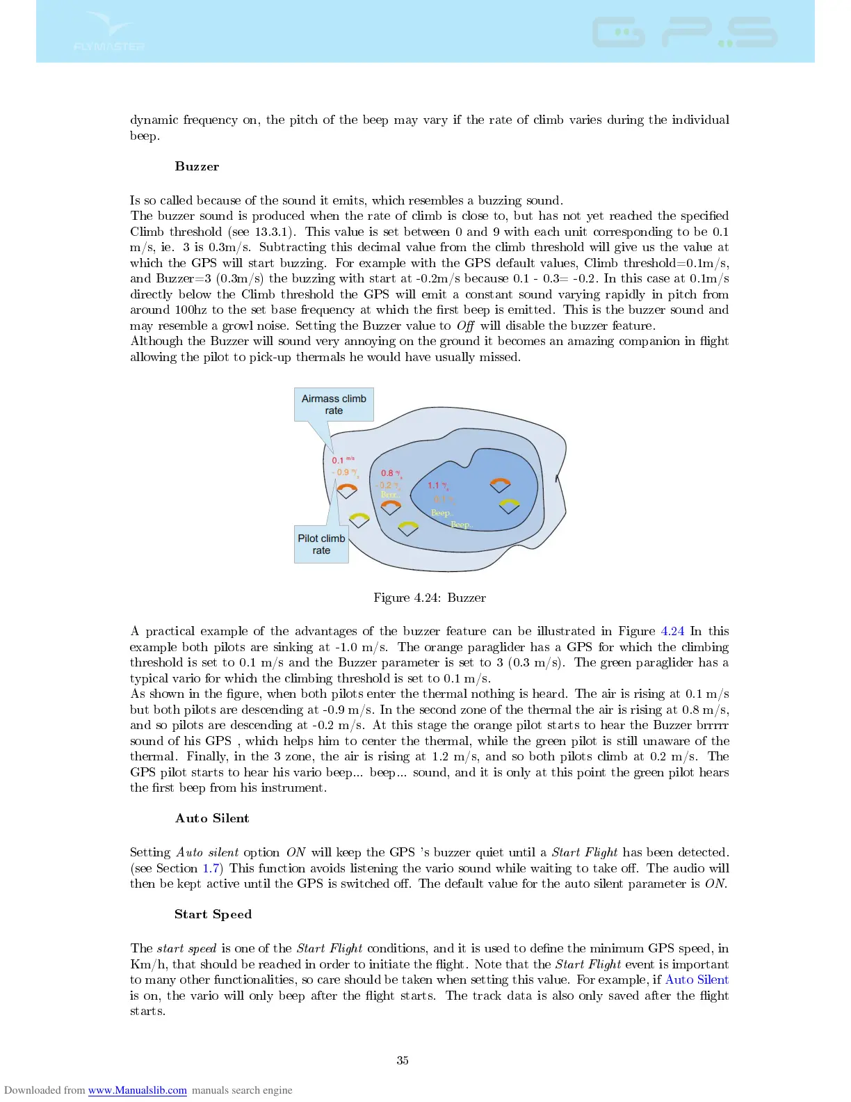 which the GPS will start buzzing. For example with the GPS default values, Climb threshold=0.1m/s,
