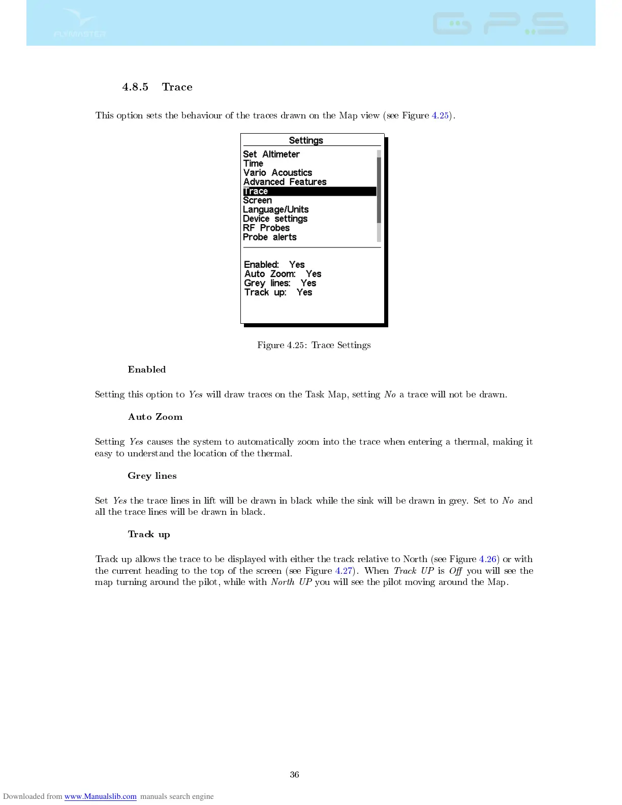 Track up allows the trace to be displayed with either the track relative to North (see Figure 4.26) or with