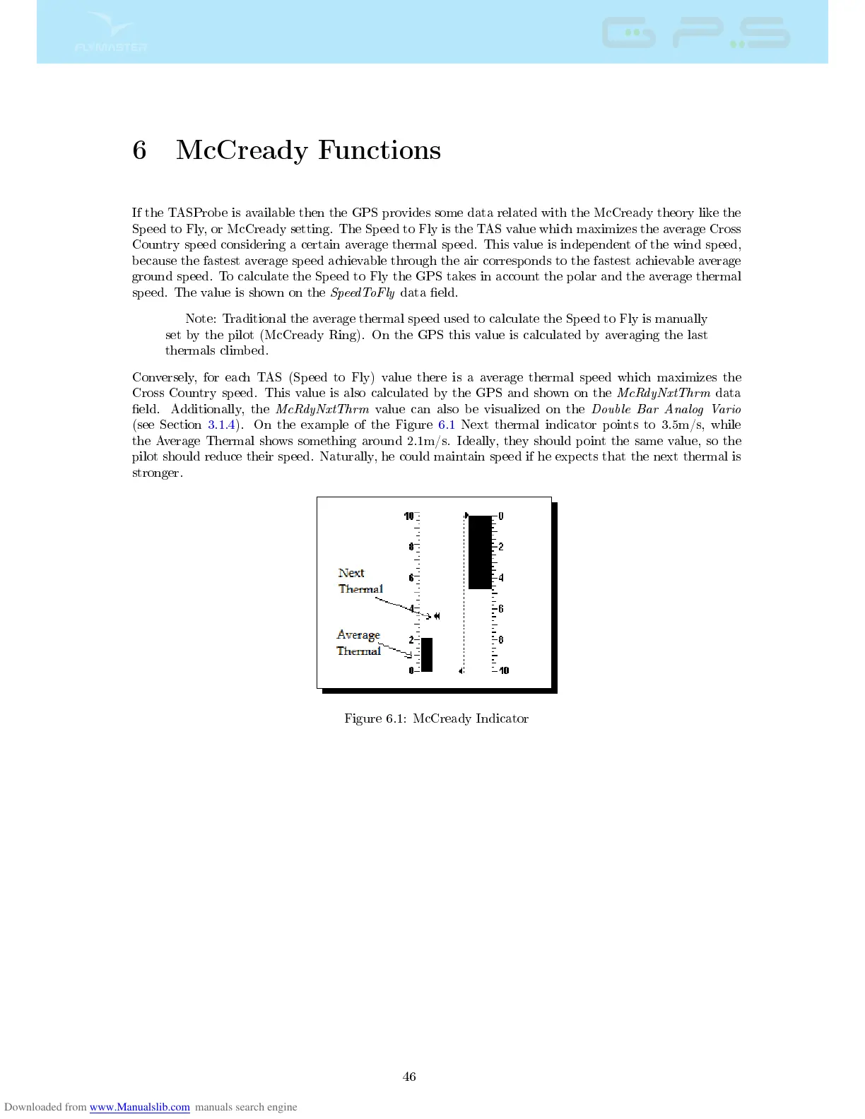 set by the pilot (McCready Ring). On the GPS this value is calculated by averaging the last