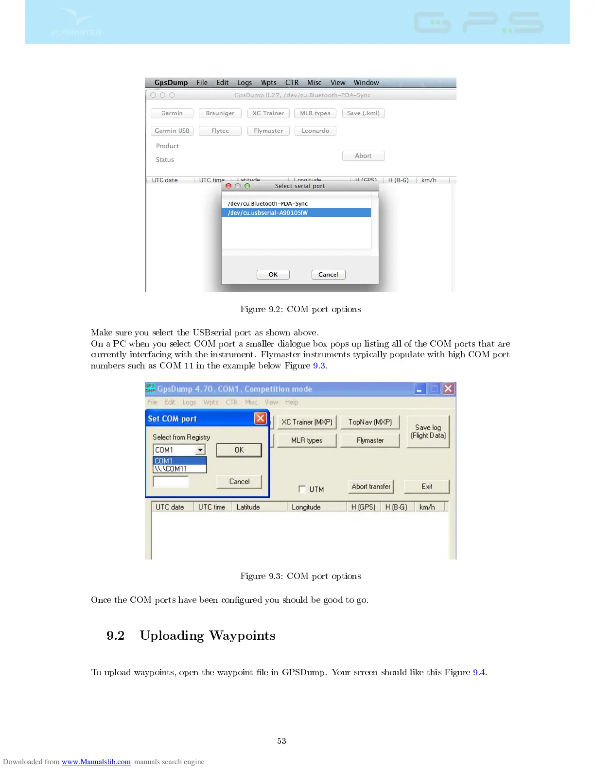 currently interfacing with the instrument. Flymaster instruments typically populate with high COM port