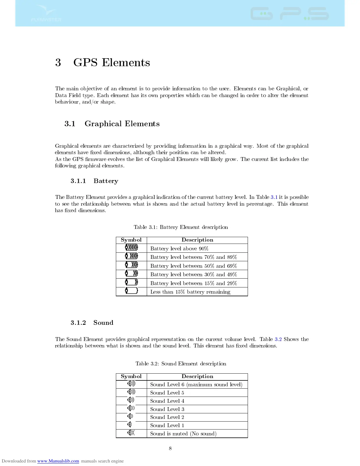 The Battery Element provides a graphical indication of the current battery level. In Table 3.1 it is possible