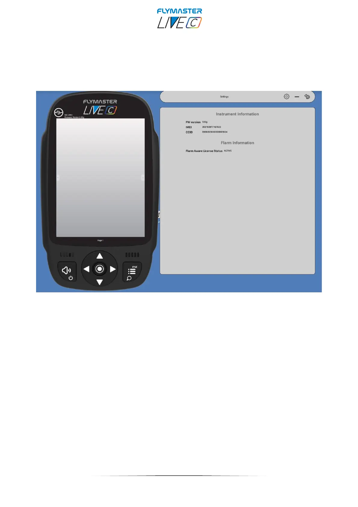 Flymaster LIVE C - Settings and Instrument Info; Imei; CCID; Status of the FLARM AWARE Licence
