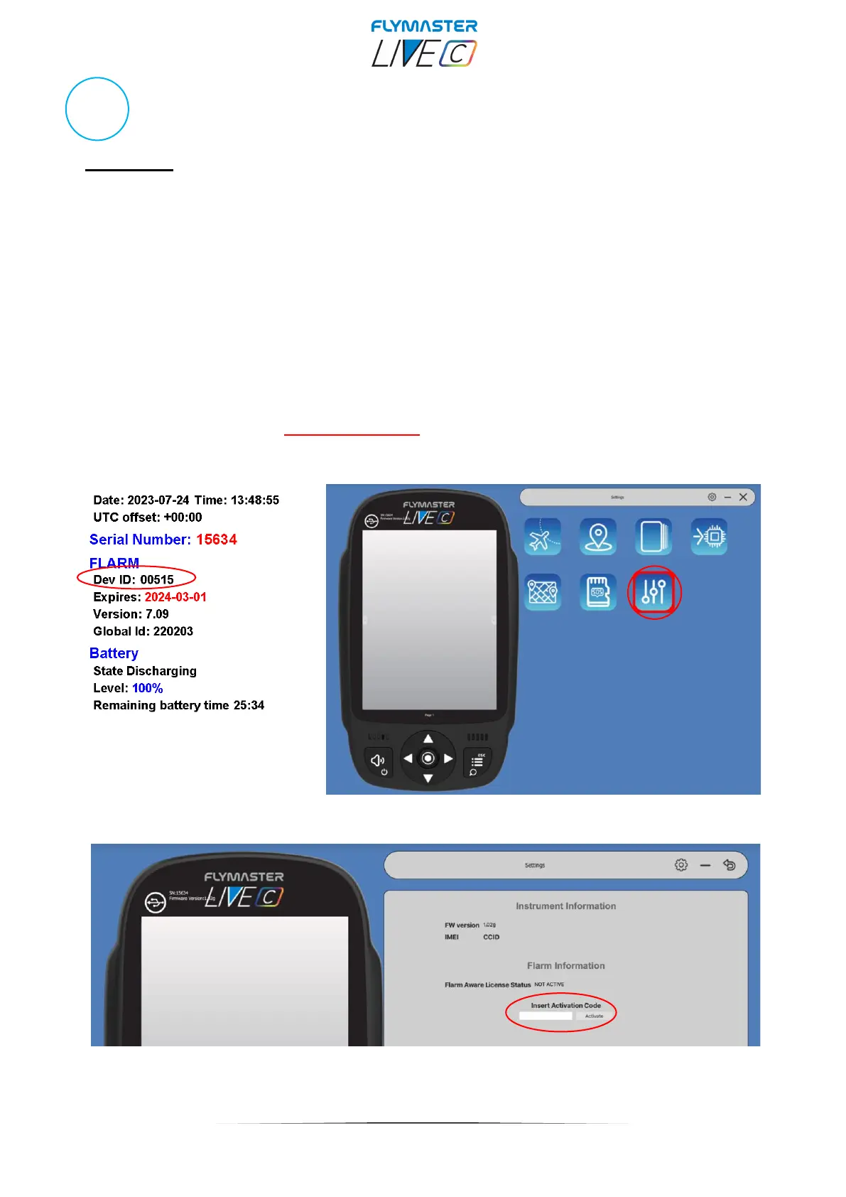 You must fill in the “Dev. ID” (Flarm Serial number, which can be seen on the instrument,