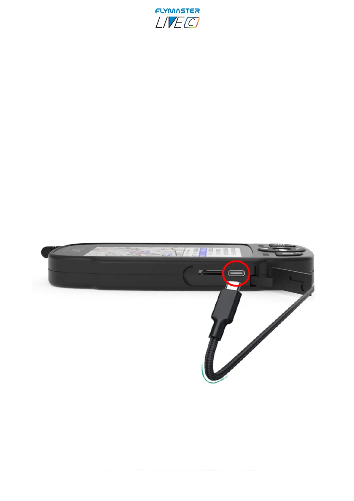 When Flymaster LIVE C is connected to a power supply (wall charger or via USB cable), the