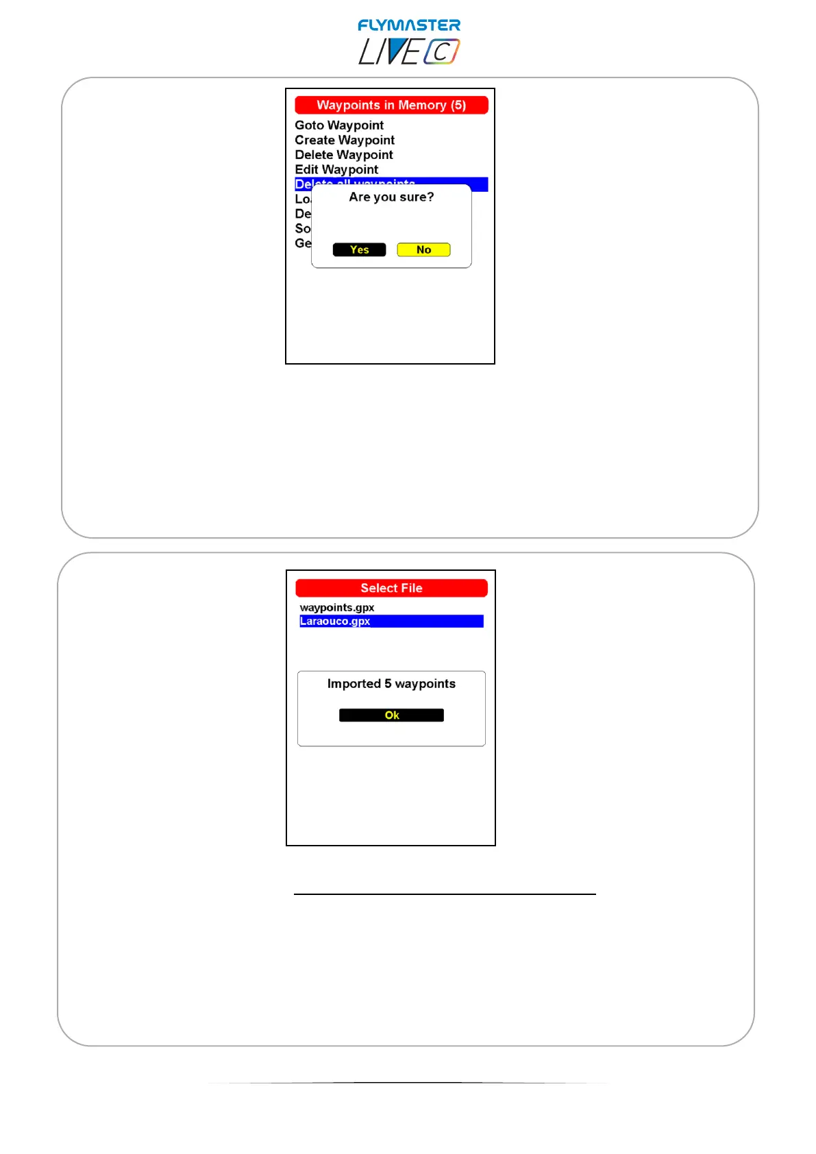 Delete all waypoints - It is possible to delete all waypoints on the LIVE C from the