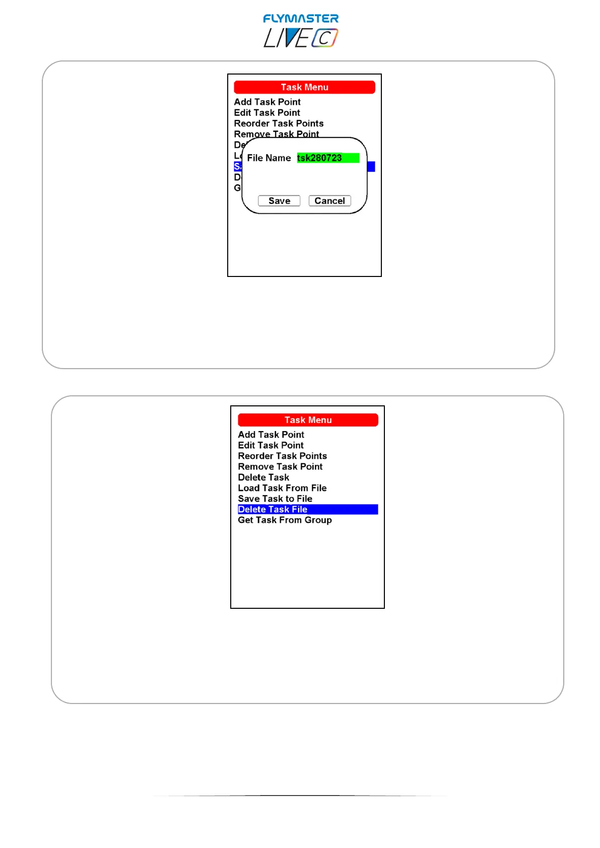 Save Task to file - This feature allows to save the active task to the SD card. Use scroll