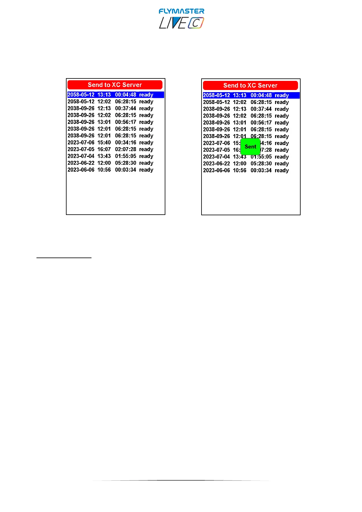 user's account on lt.flymaster.net or livetrack360.com when the option for automatic sending to the XC