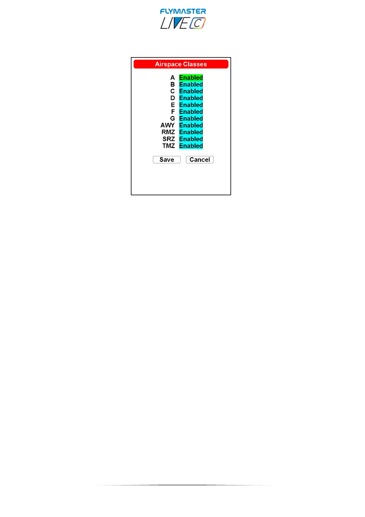 Flymaster LIVE C - Airspace Classes; Aispace Classes (a to TMZ)