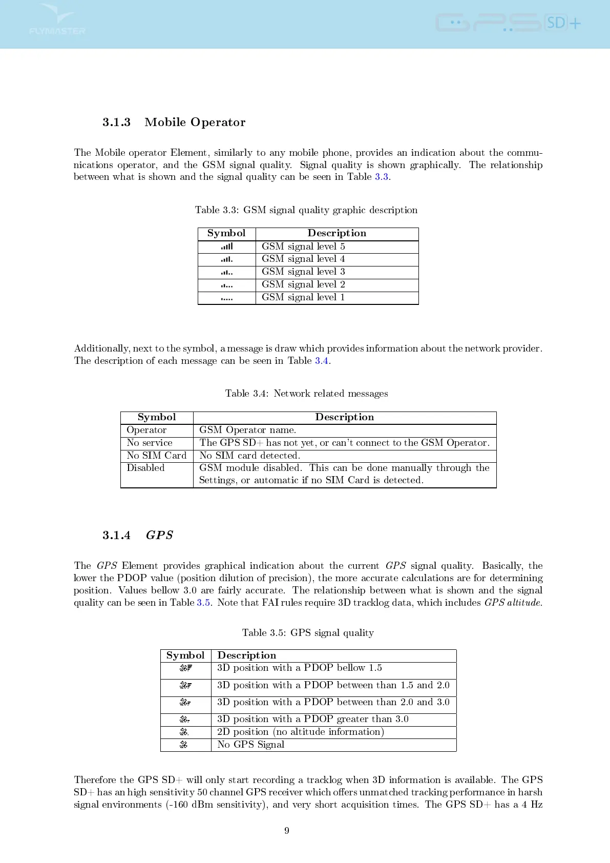 No service The GPS SD+ has not yet, or can't connect to the GSM Operator.