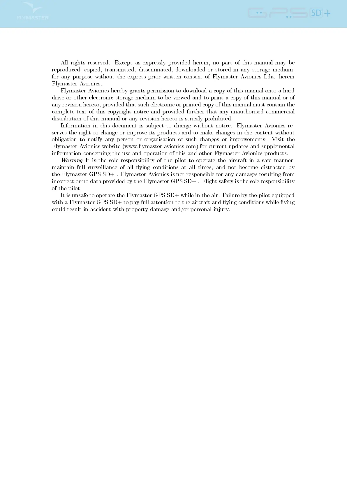 the Flymaster GPS SD+ . Flymaster Avionics is not responsible for any damages resulting from