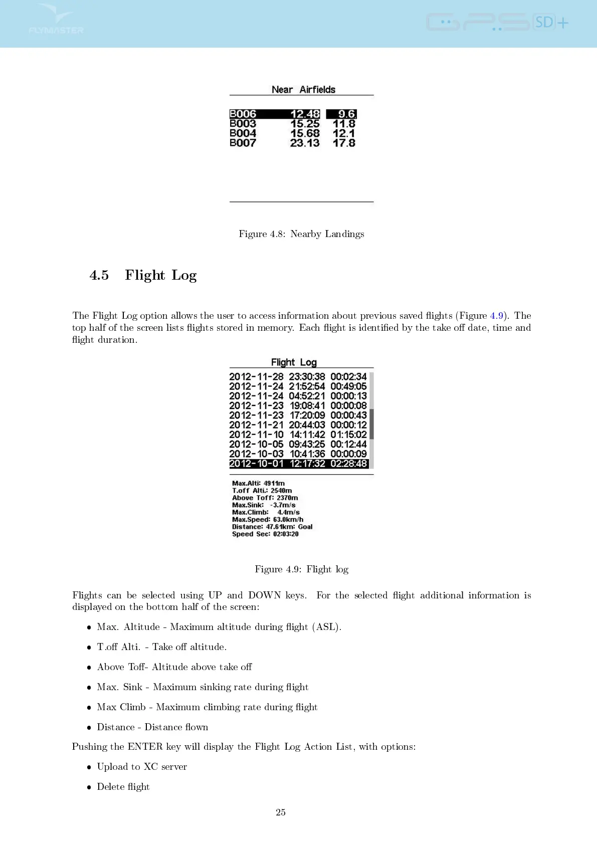 The Flight Log option allows the user to access information about previous saved ights (Figure 4.9). The