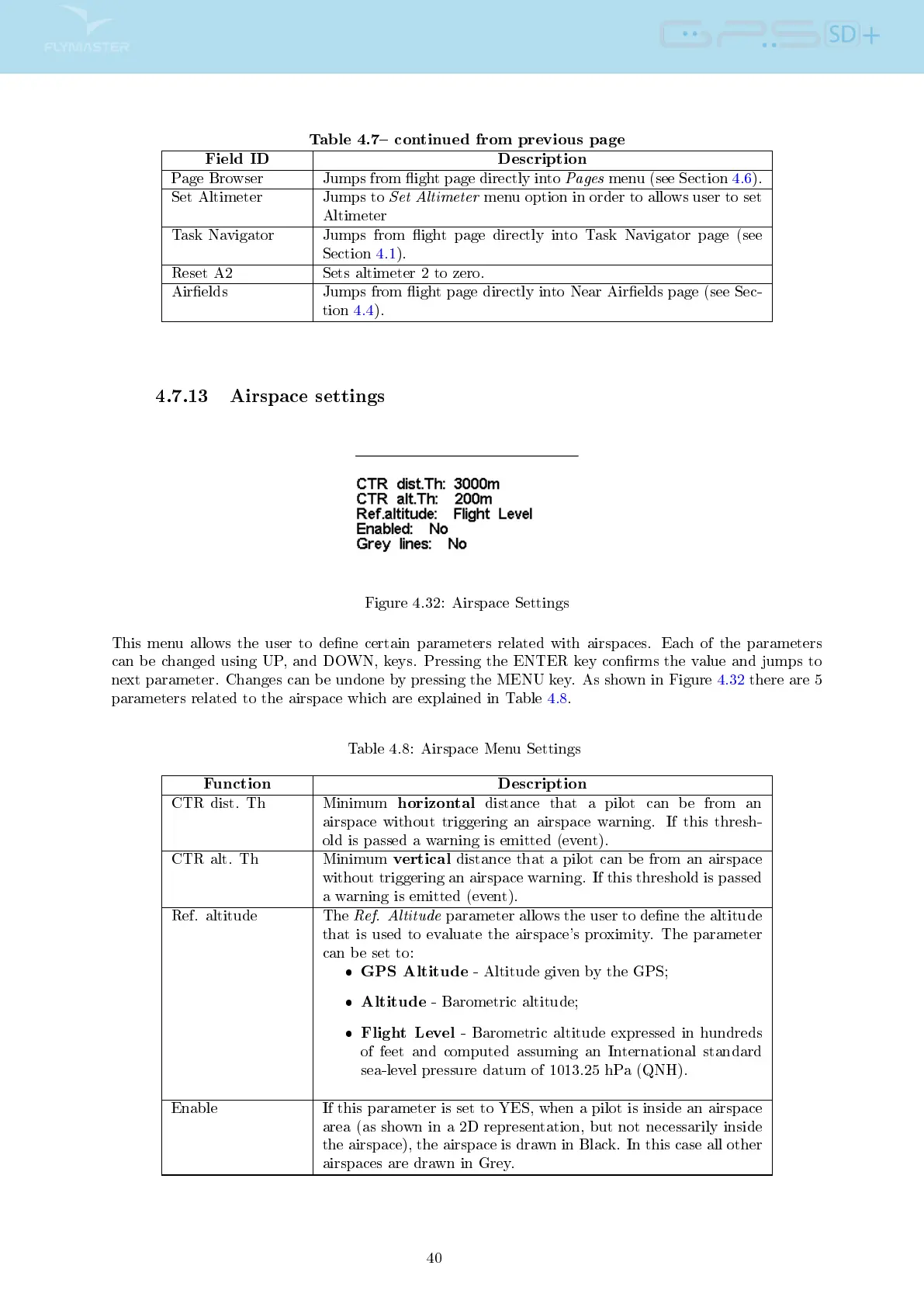 This menu allows the user to dene certain parameters related with airspaces. Each of the parameters