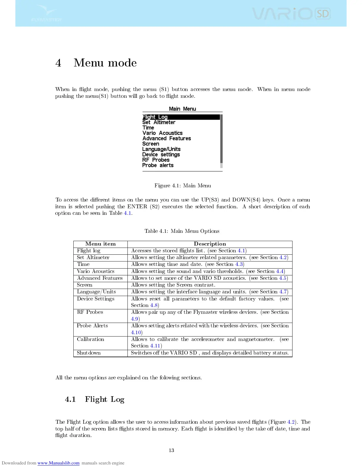 The Flight Log option allows the user to access information about previous saved ights (Figure 4.2). The