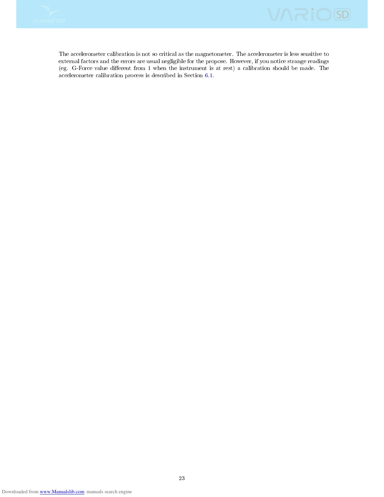 (eg. G-Force value dierent from 1 when the instrument is at rest) a calibration should be made. The