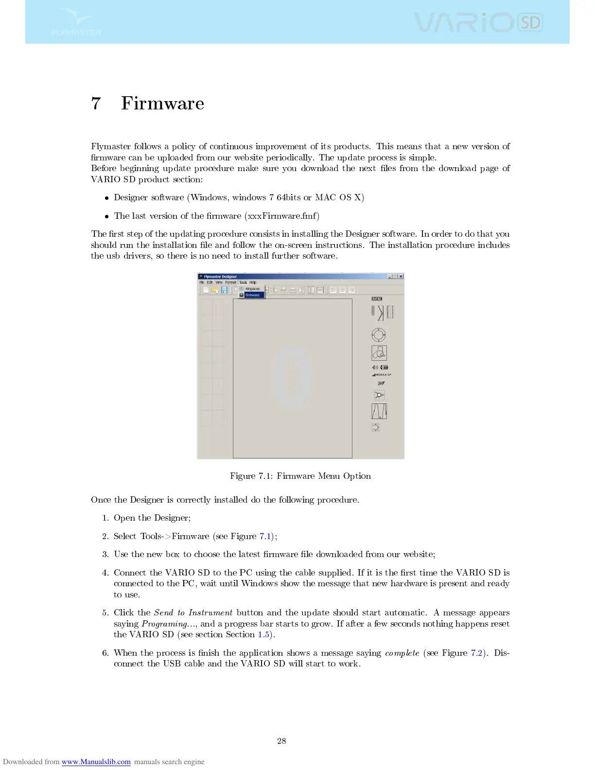 2. Select Tools->Firmware (see Figure 7.1);