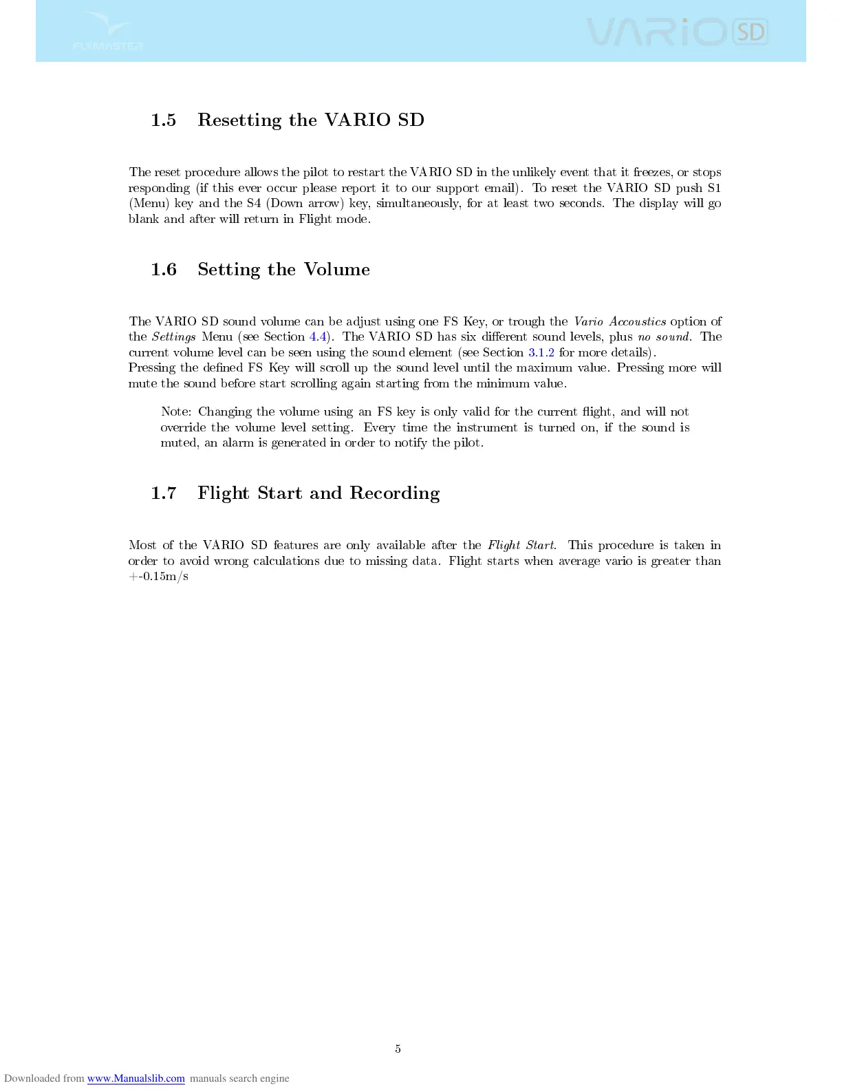 Menu (see Section 4.4). The VARIO SD has six dierent sound levels, plus