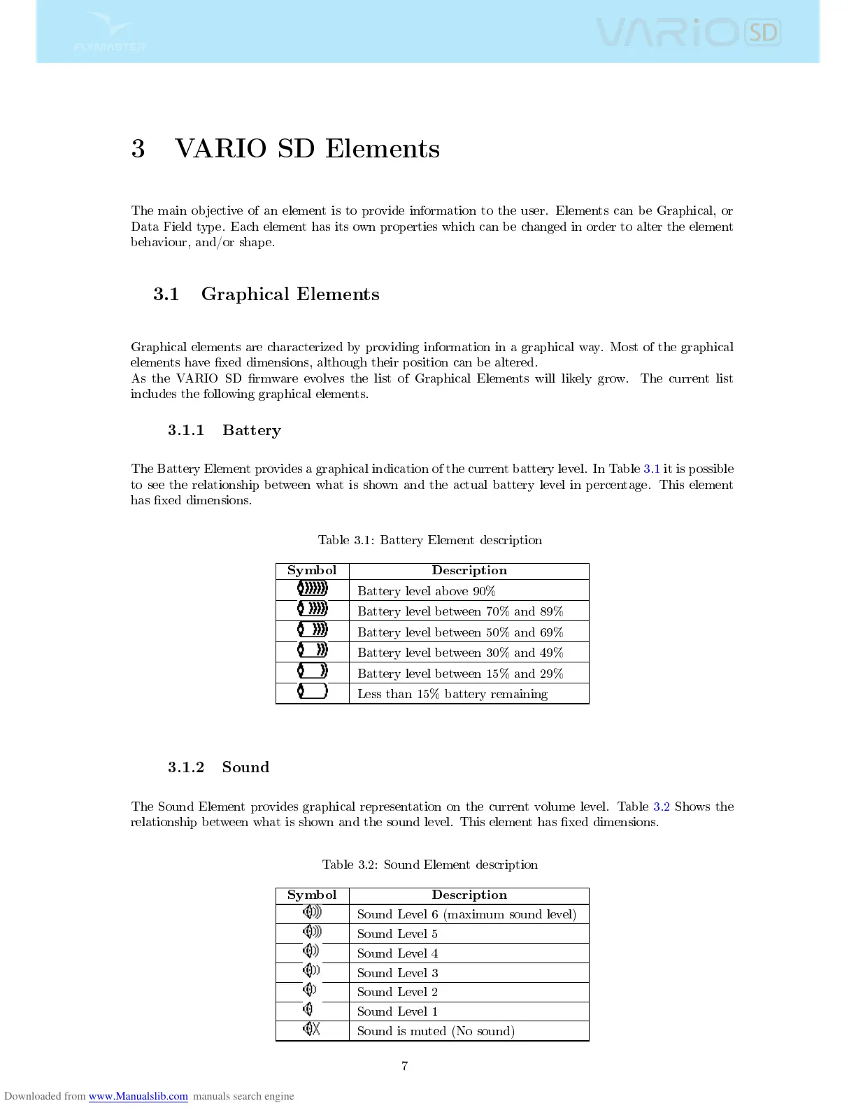 As the VARIO SD rmware evolves the list of Graphical Elements will likely grow. The current list