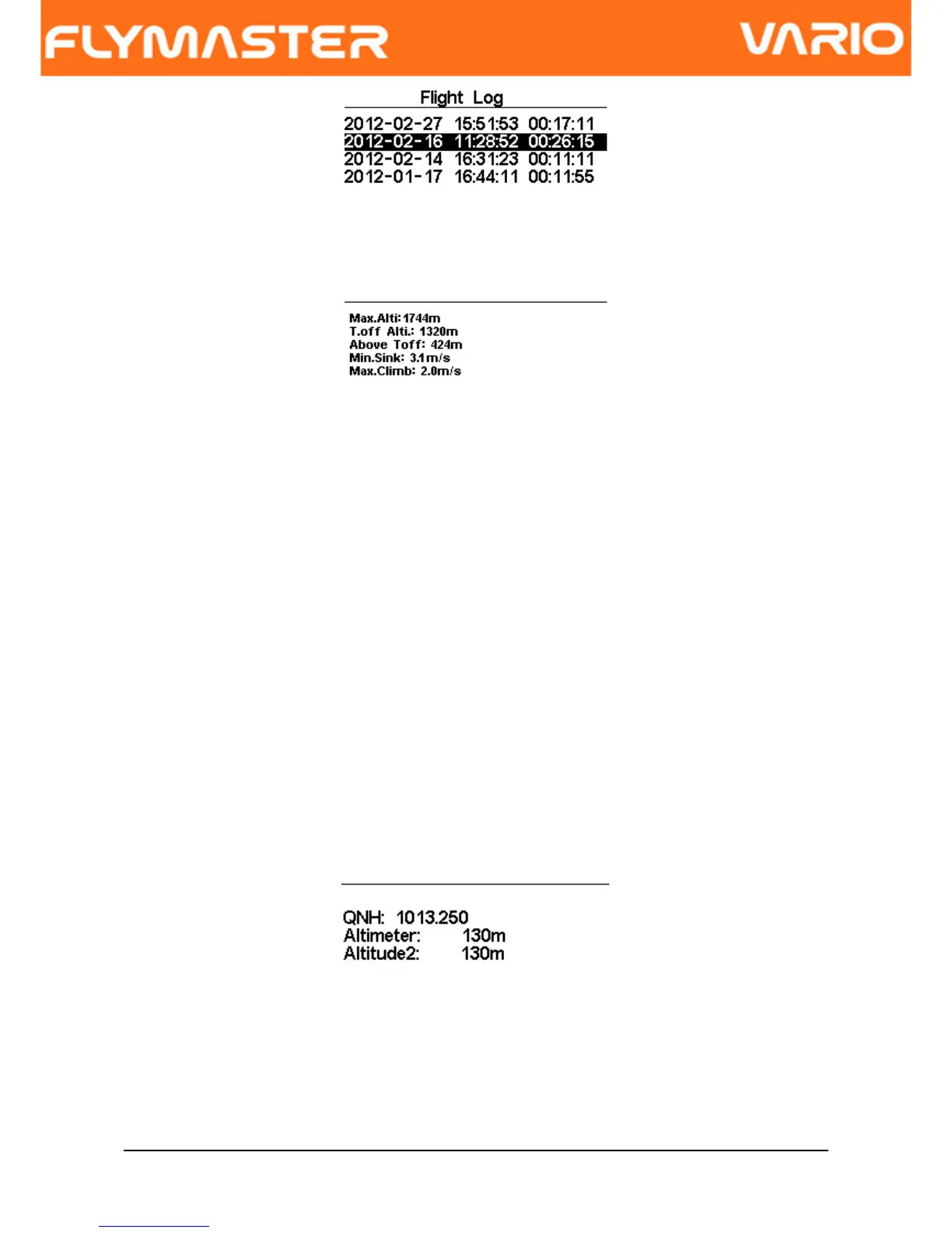 The “Set Altimeter” page allows the user to adjusts the barometric altimeters. The VARIO