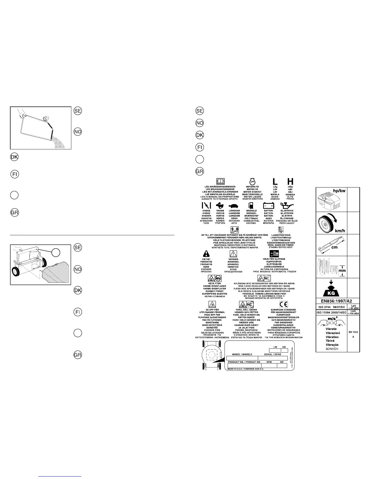 Disse symboler kan fi ndes på din plæneklipper eller i de instruktioner der leveres
