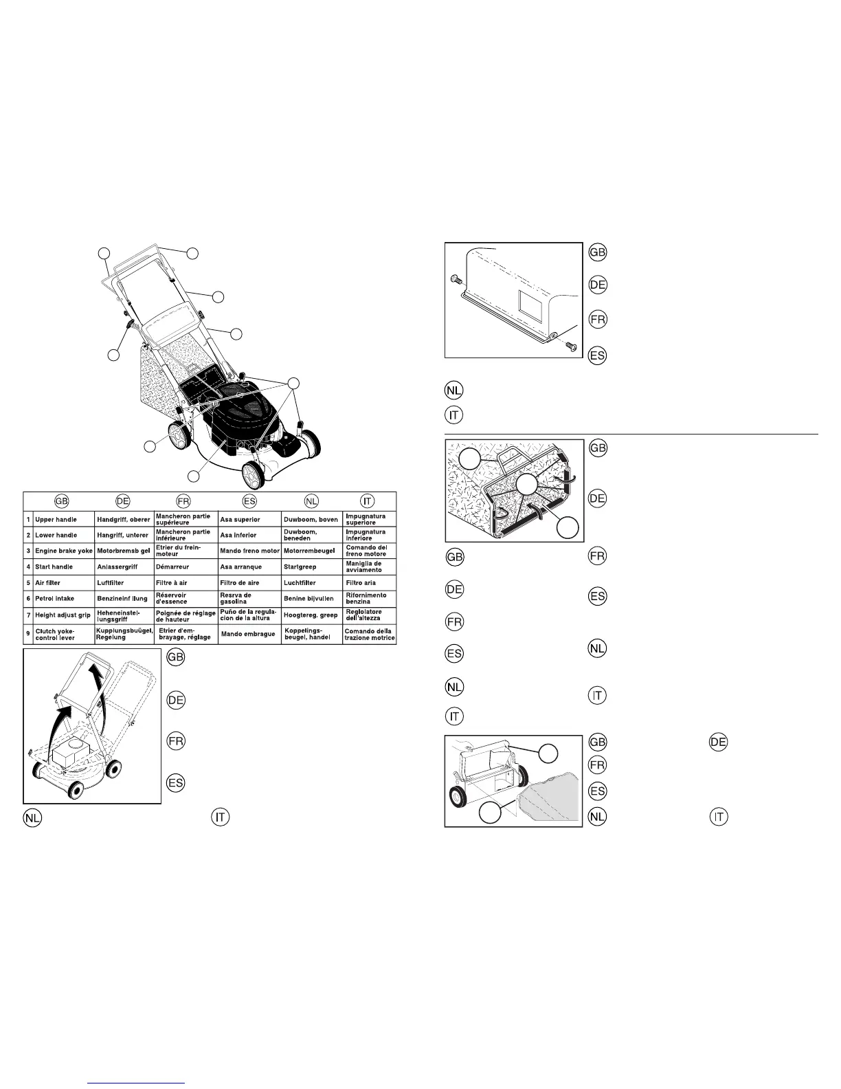 • De grasvergaarbak wordt op zijn plaats gehouden door de druk