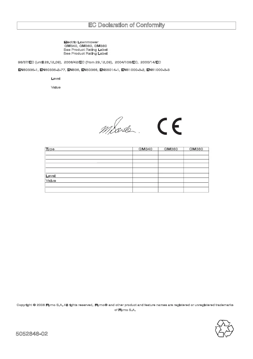 Copyright © 2008 Flymo S.A. All rights reserved. Flymo® and other product and feature names are registered or unregistered trademarks
