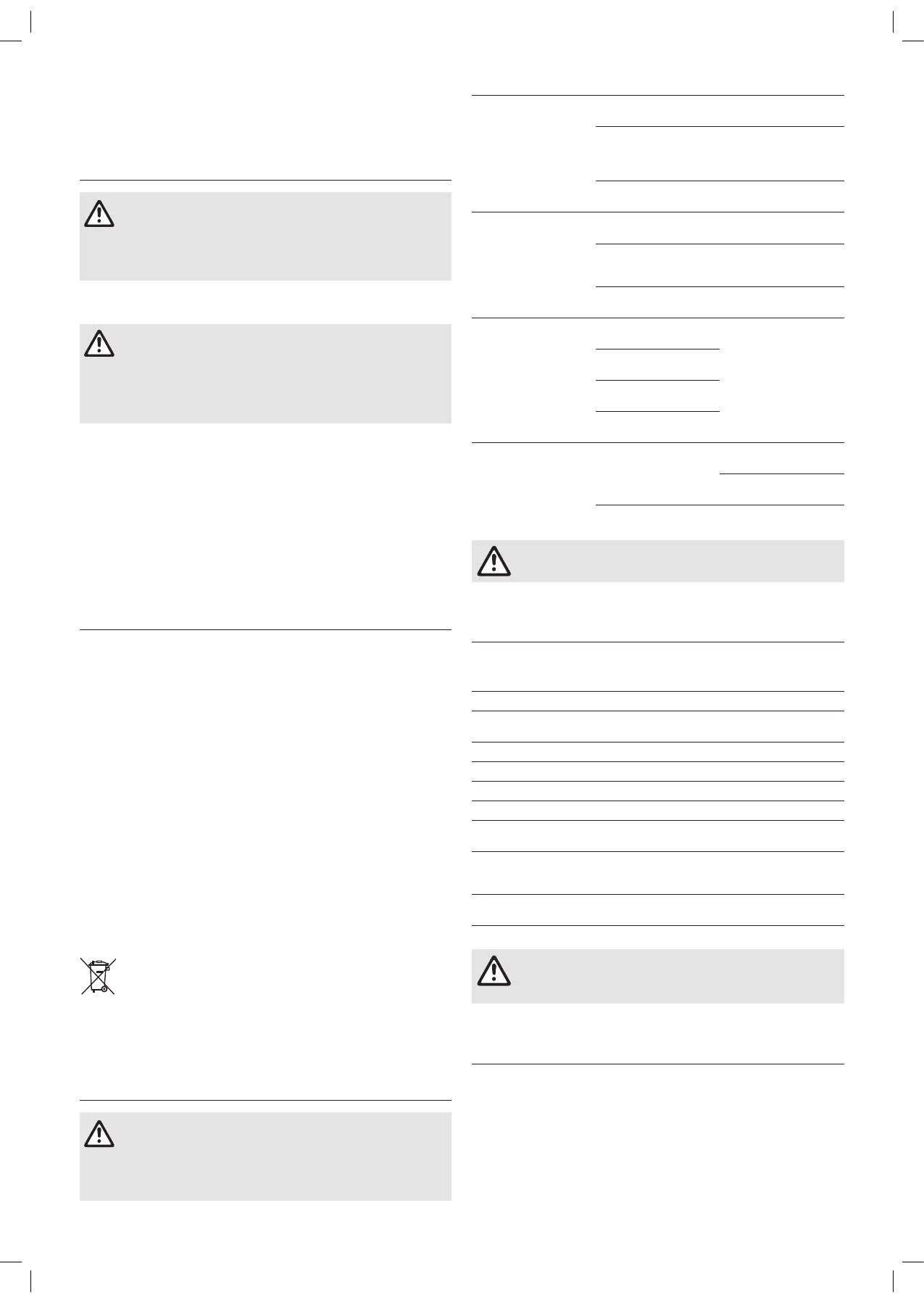 Risk of injury and risk of damage to the product.