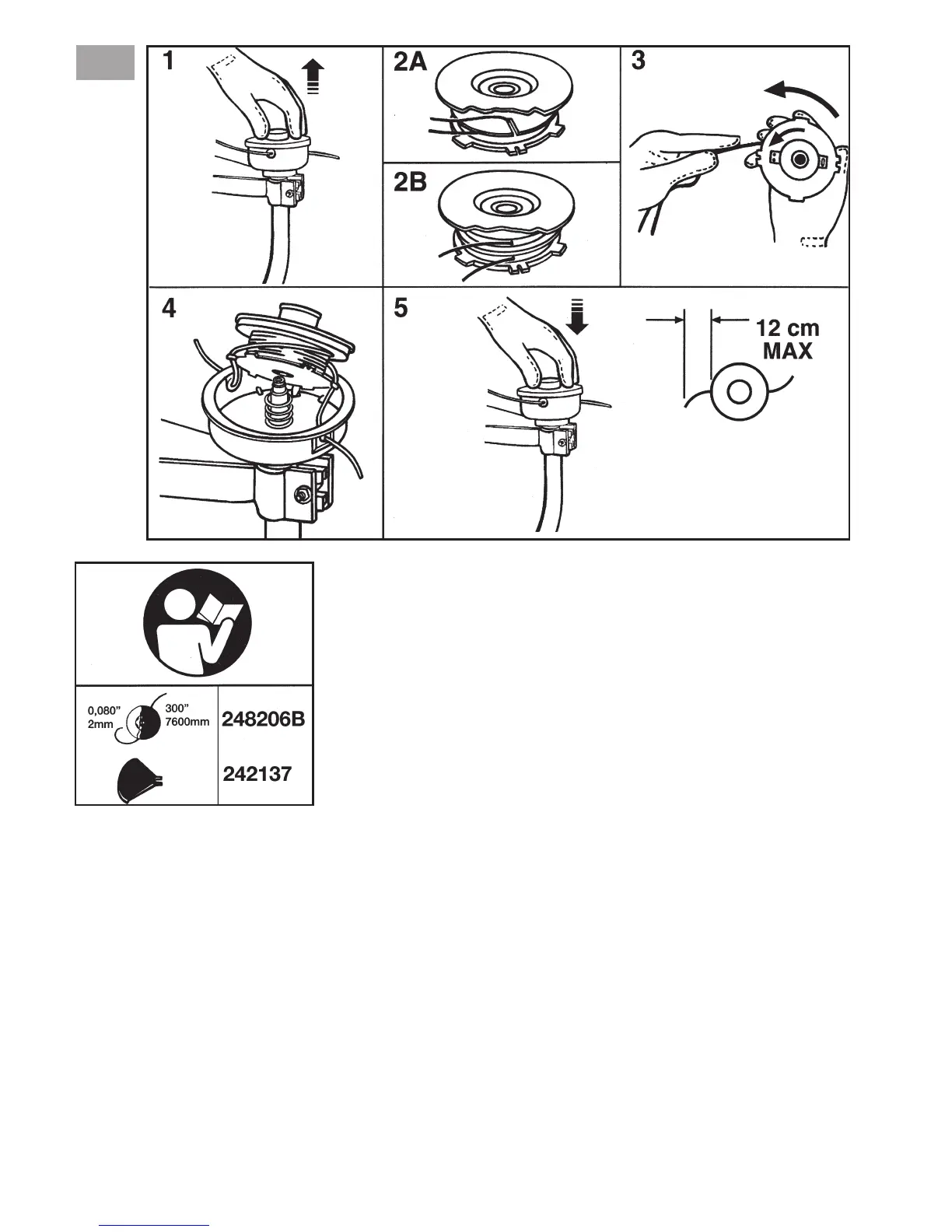 { TABELL FOR KORREKT MONTERING AV TRÅDSPOLE / SAGBLAD OG SPRUTSKJÆRM /