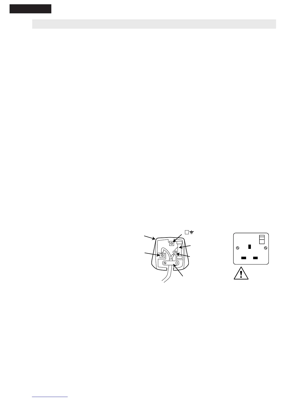 WARNING: Do not make any connection to the earth terminal of the plug marked ‘E’ or