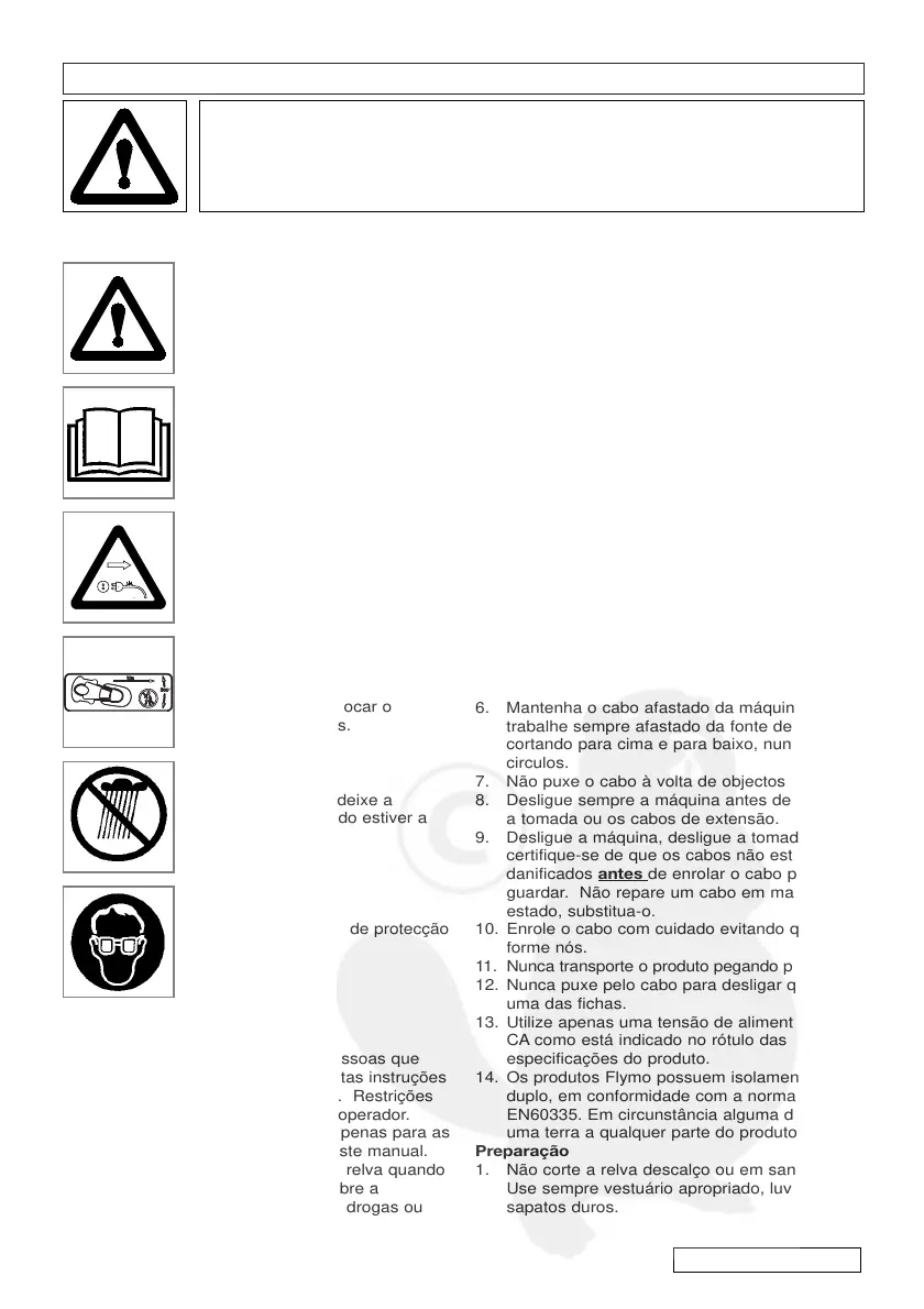 segurança e cuidado que se encontram neste manual e na máquina de cortar relva.