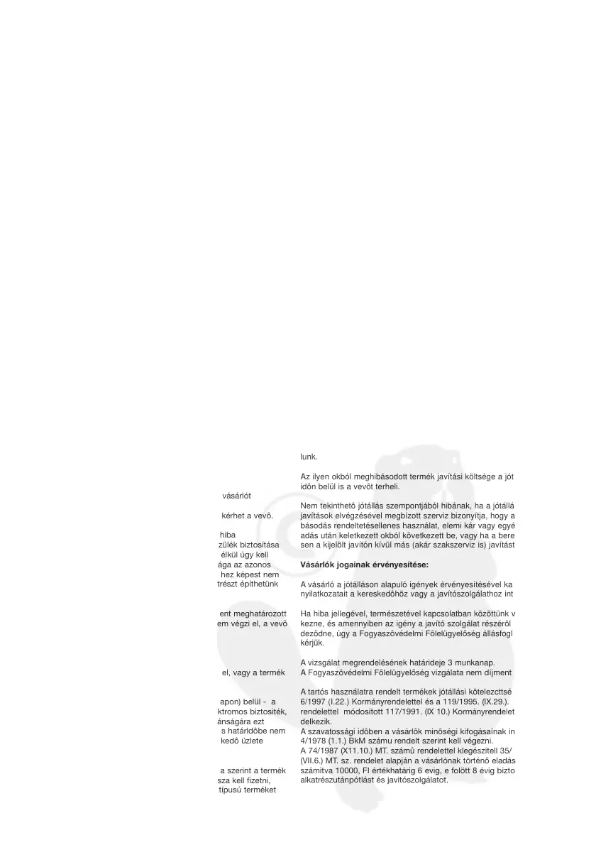 - dijmentes javítast vagy megfelelô árieszállítást kérhet a vevô.