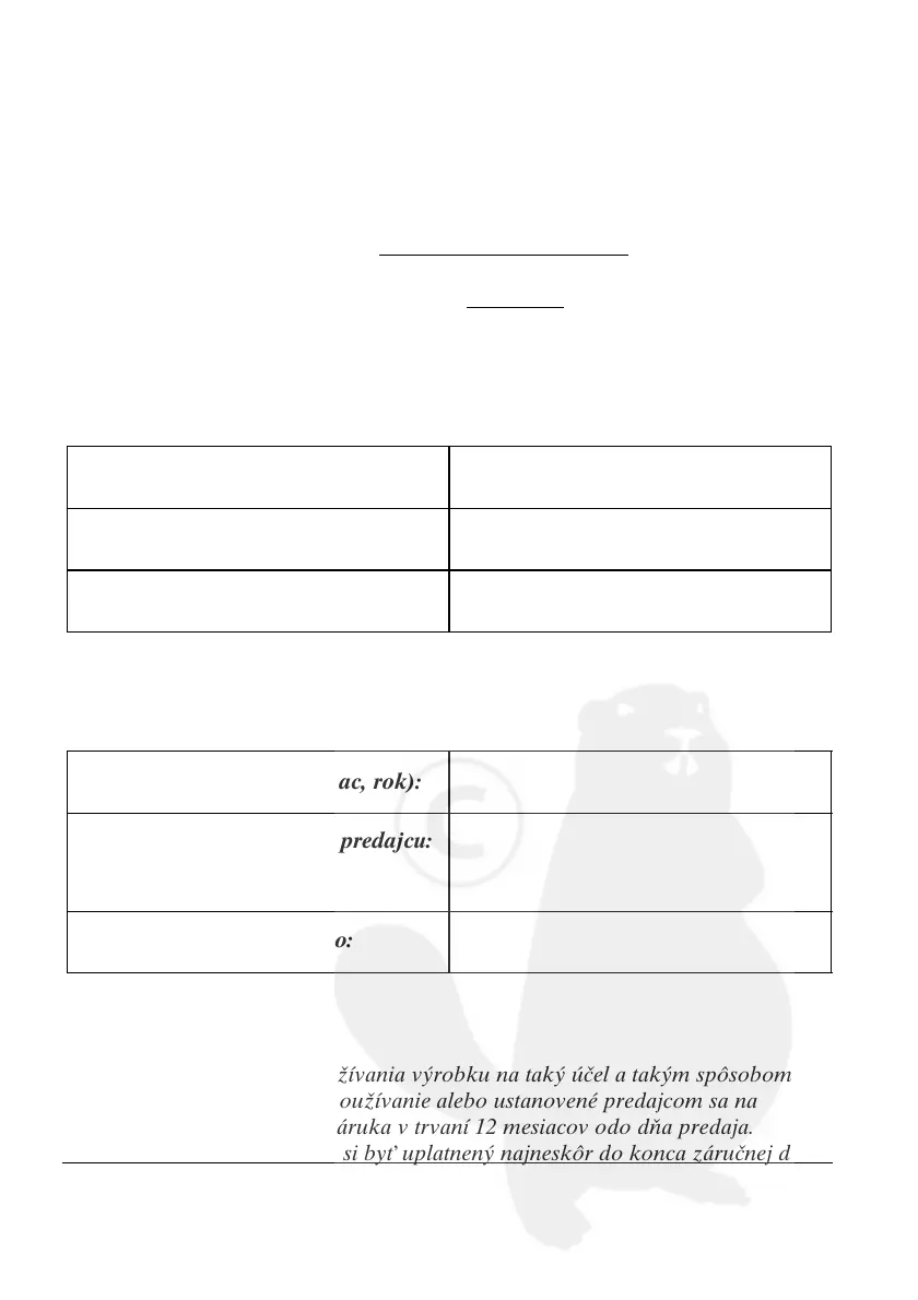 BEZ PREDLOŽENIA TOHOTO RIADNE VYPLNENÉHO ZÁRUČNÉHO LISTU