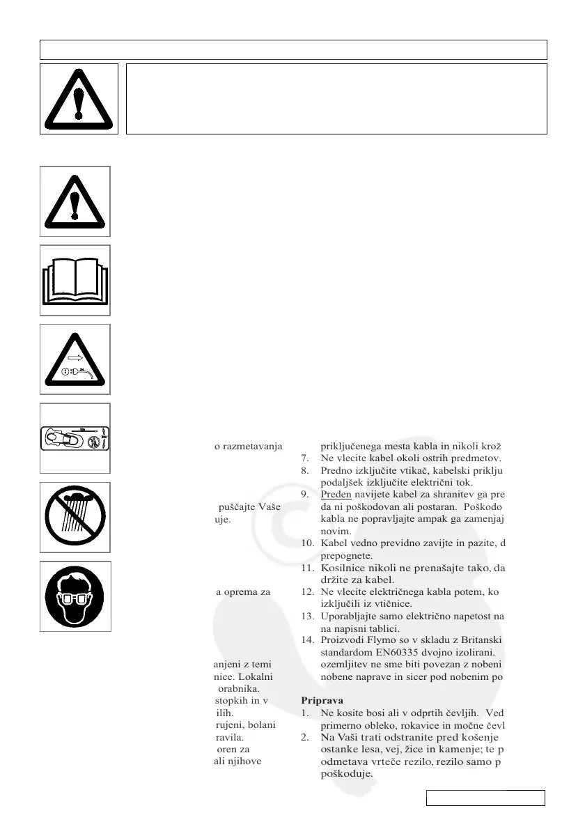 sledeïa opozorila in varnostne napotke v tem priroïniku in na kosilnici.