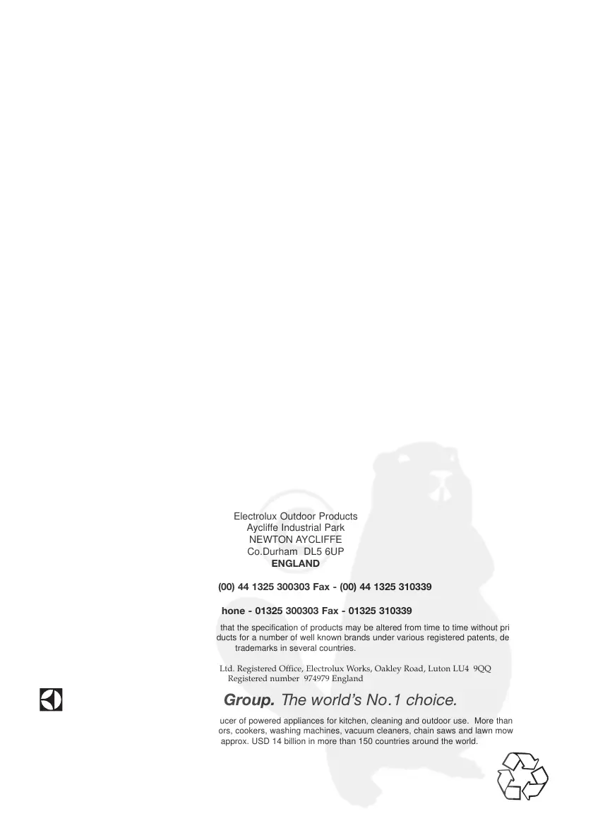 © Electrolux Outdoor Products Ltd. Registered Office, Electrolux Works, Oakley Road, Luton LU4 9QQ