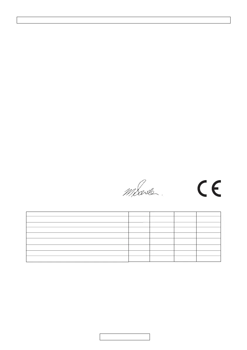 & garanterte lydeffektverdier er i henhold til tallene i tabellen.