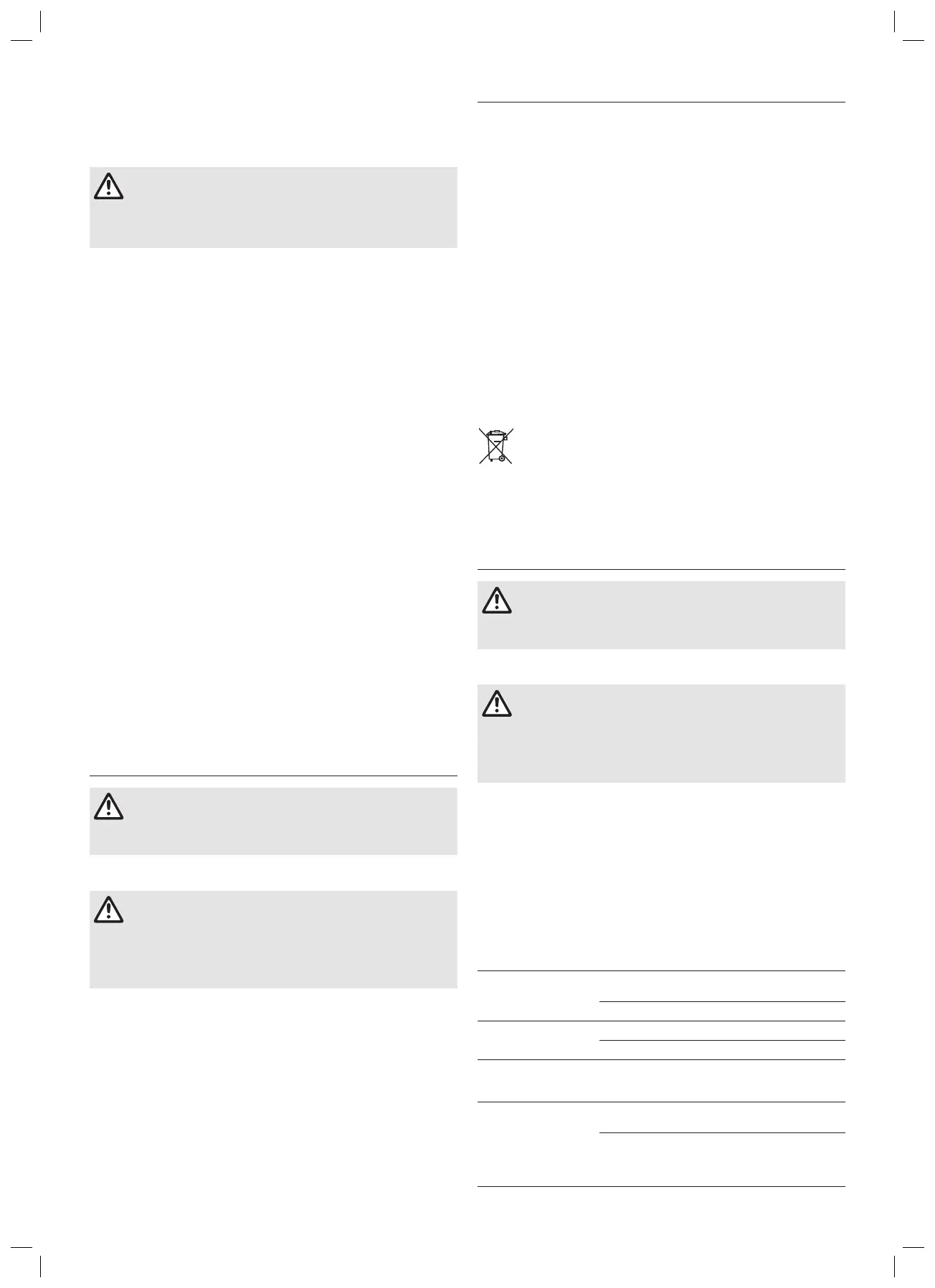 Risk of injury and risk of damage to the product.