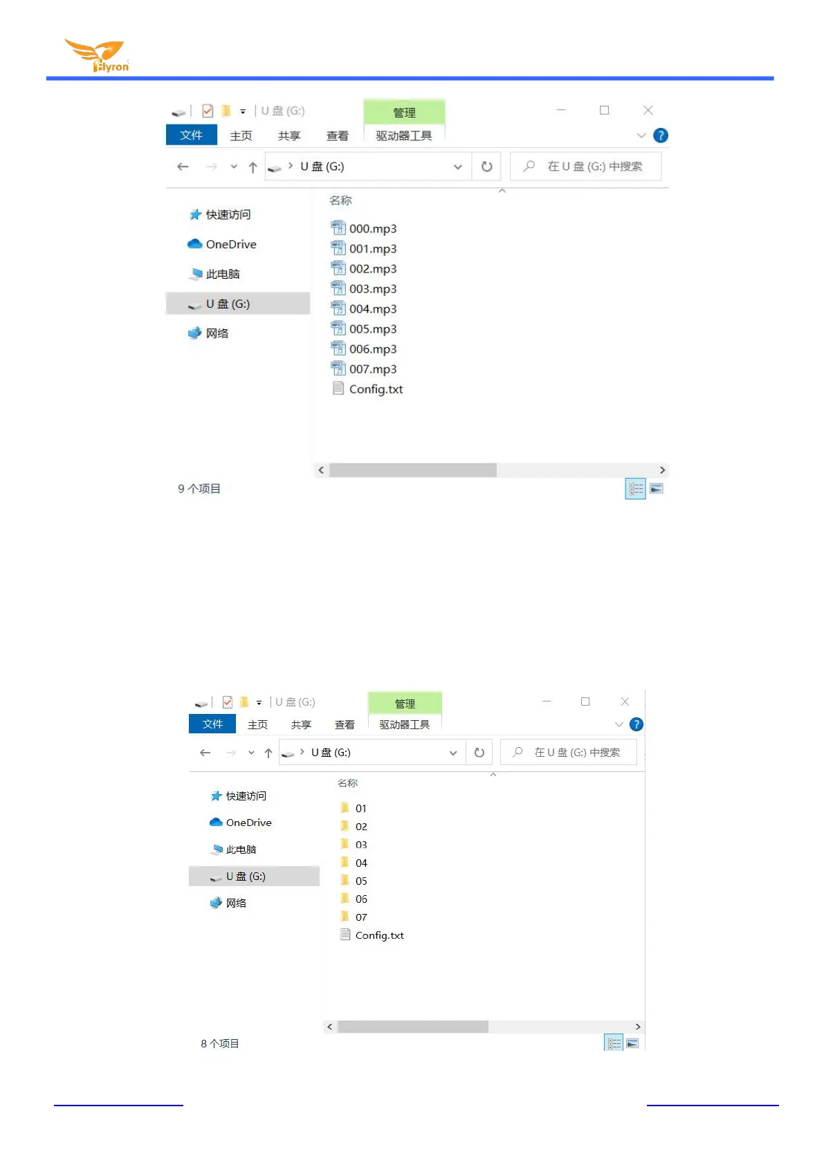 At first, users need to create seven folders on the storage device (built-in flash memory/micro SD card/USB flash