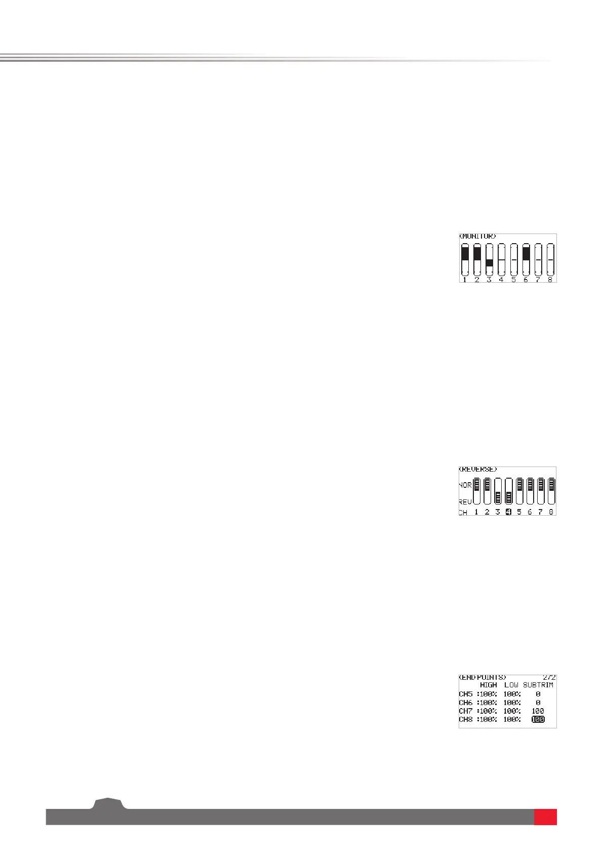 travel of the HIGH, LOW and SUBTRIM at both ends of the channel respectively.